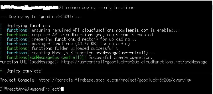 3. 프로젝트 디렉토리로 이동한 후, init명령어를 이용해 functions폴더를 만들어보자. (자바스크립 선택)