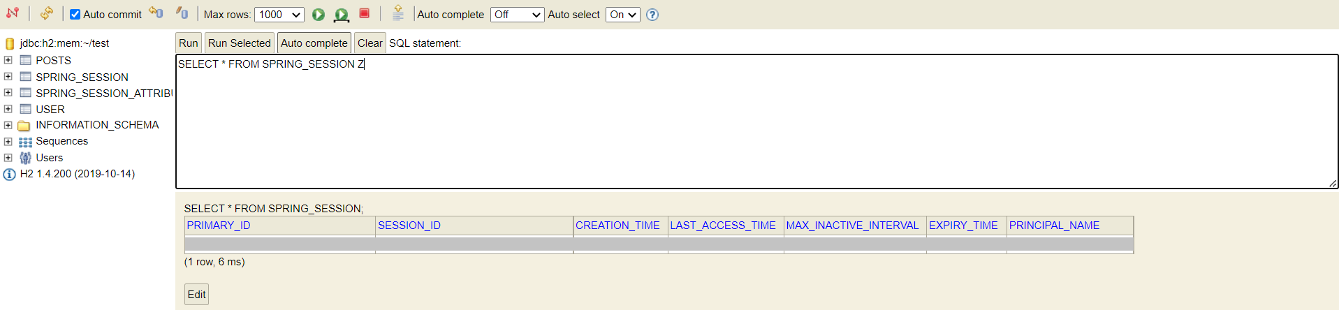 실제로 접속해서 DB를 보면 SPRING_SESSION, SPRING_SESSION_ATTRIBUTES 테이블이 생성되는 것을 볼 수 있다.