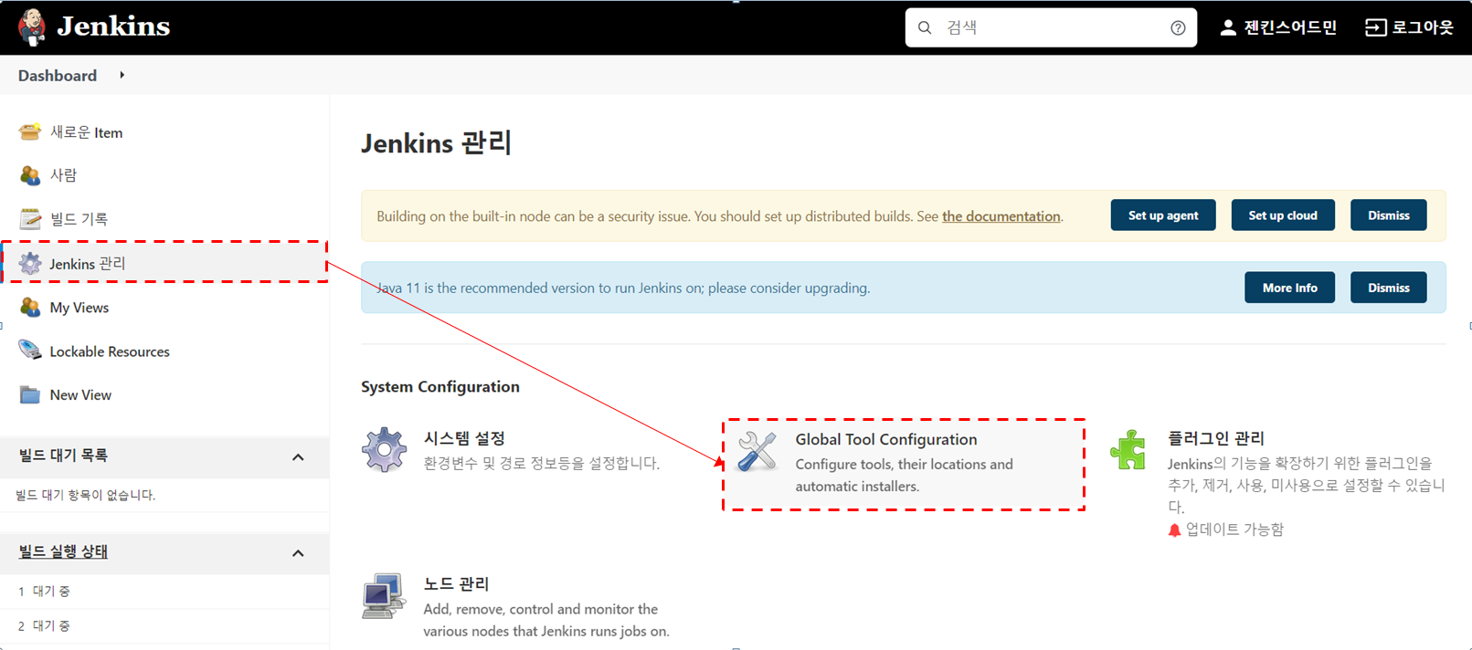jenkins 관리 > Golbal Tool Configuration