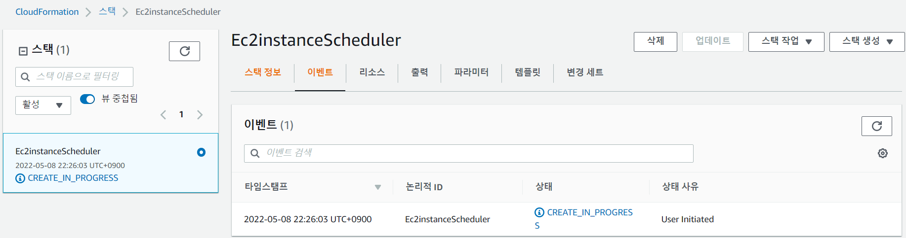 6. CREATE_IN_PROGRESS 단계에서 어느정도 기다려야함