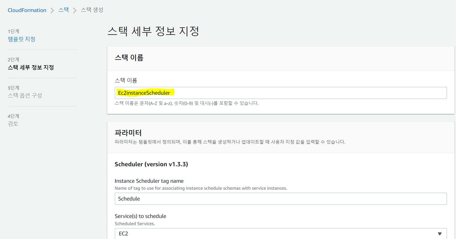 2. 스택 세부 정보 지정